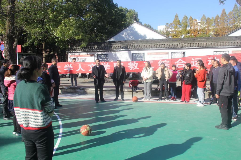 八仙过海,各显神通。个人赛设置了定点投篮、跳绳、踢毽子、袋鼠跳、托球跑。迈开双脚与肩同宽、用腕部力量带动球体、瞄准投出,热门项目定点投篮拉开了本次比赛的序幕。老师们围聚在篮球场上,个个屏气凝神,注视着篮筐,为进球的老师欢呼,比赛场上气氛热烈,充分调动了各参赛老师的积极性。