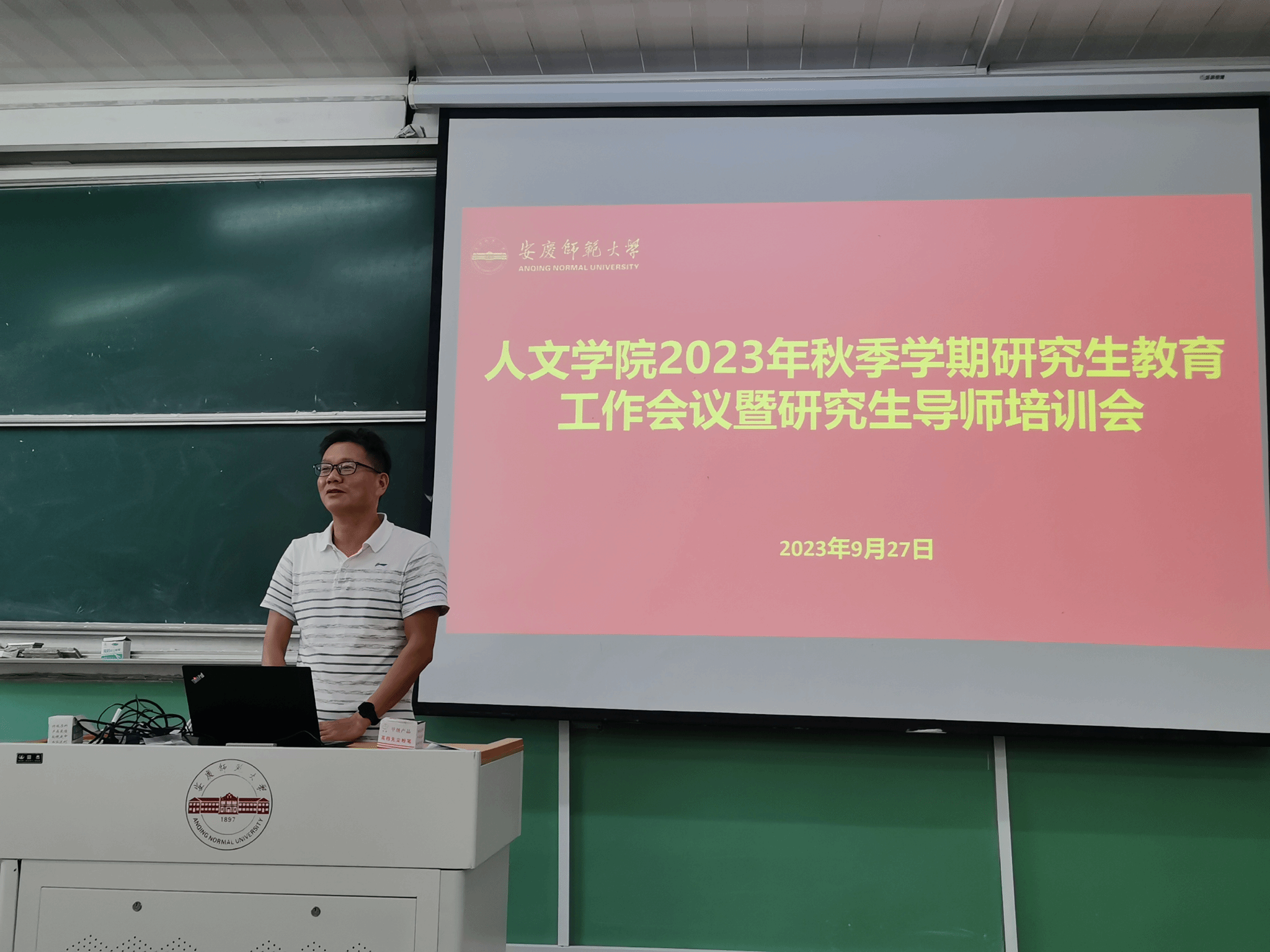 为深入学习宣传贯彻党的二十大精神,全面落实研究生导师立德树人根本任务,提升研究生导师队伍建设水平,推动研究生教育高质量发展,9月27日下午太阳成集团tyc9728在理二阶教室召开2023年秋季学期研究生教育工作会议暨研究生导师培训会。太阳成集团tyc9728领导班子成员、各学位点负责人、全体研究生导师、研究生辅导员、研究生秘书参加会议。