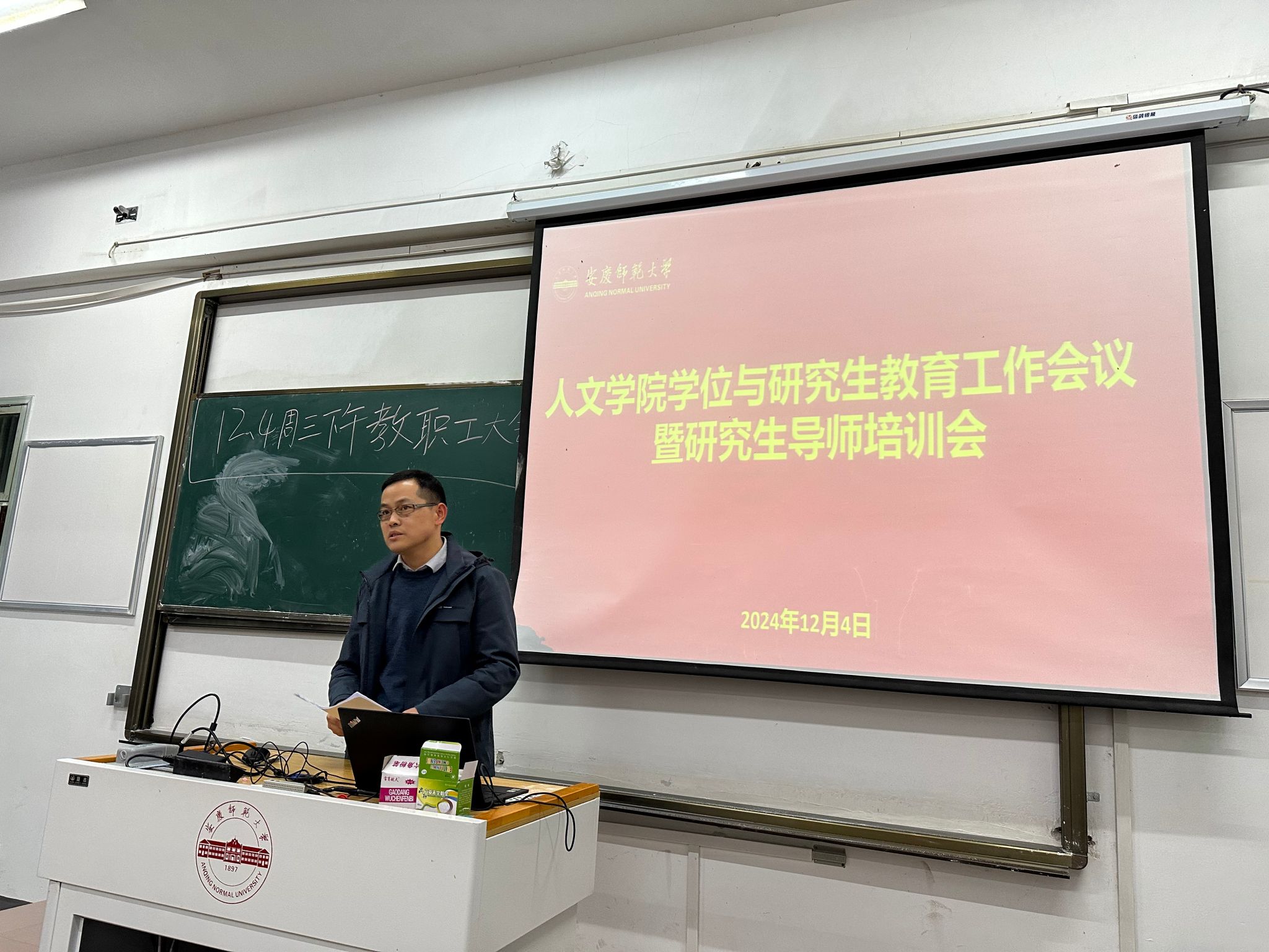 12月4日,太阳成集团tyc9728在菱湖校区教学楼215教室召开学位与研究生教育工作会议暨研究生导师培训会。太阳成集团tyc9728党政班子成员、各学位点负责人、全体研究生导师、研究生辅导员、研究生秘书等参加会议。副经理沈志富主持会议。