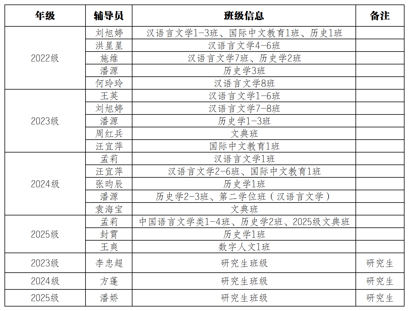 2025-2026第二学期辅导员带班安排