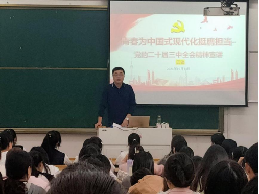 开班典礼结束后,王波结合“中国共产党党员条件与当代老员工入党程序和动机”专题,以“青春为中国式现代化挺膺担当-党的二十届三中全会精神宣讲”为主题开展理论宣讲,系统讲述自党的十一届三中全会以来,党的历届三中全会对党和国家发展的重大意义,并对党的二十届三中全会的时代意义和历史意义等内容作了细致讲解,勉励同学们认真学习、严于律己、争作表率,争取早日成为一名合格的共产党员,在为中国式现代化挺膺担当中展现青春作为、彰显青春风采、贡献青春力量。