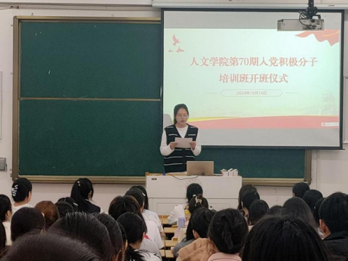 开班仪式在庄严的国际歌中拉开序幕。汉语言文学专业2023级(2)班刘雨晴同学代表全体学员发言,表达了对党的崇高敬意与加入党组织的强烈愿望,并结合自己的学习和工作经历,倡导全体学员在实际行动中践行服务精神、在探索中实现自我价值,在新时代的广阔天地中为更多人带去光和热。