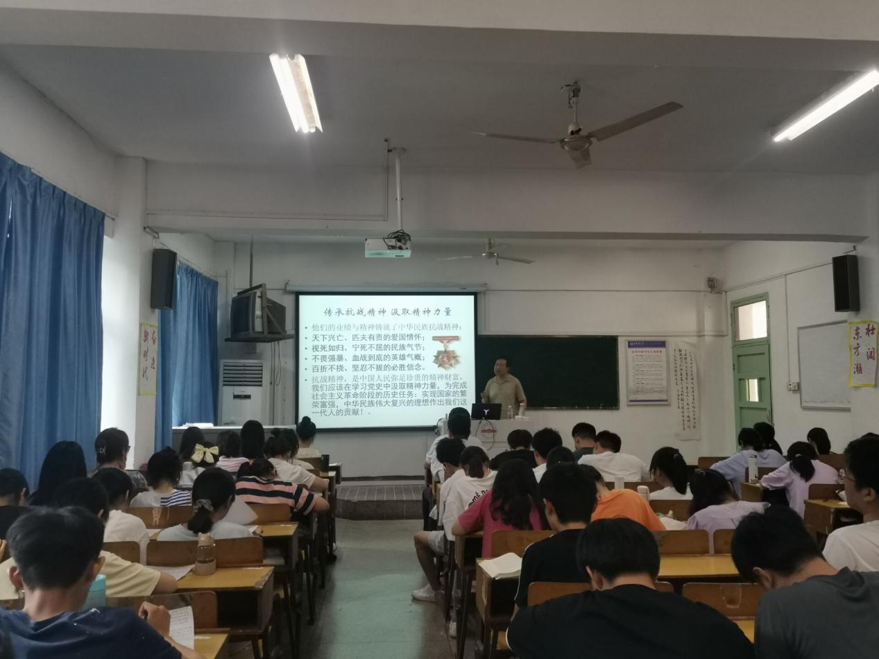 吴毅安教授从岳西谈判开创停战合作抗敌新局面、党的各级组织恢复与重建、建立地方抗日武装、安庆新四军的抗战作战、望狮岭会议的重要历史意义、敌后根据地建设、胜利以后主力北移与坚持斗争、传承抗战精神汲取精神力量等八个方面来介绍了中国共产党在安庆的抗战经历。吴教授结合抗战精神,为同学们呈现了一幅幅安庆地区党的组织带领军民克服一切艰难险阻、为民族解放奋斗的生动画面。