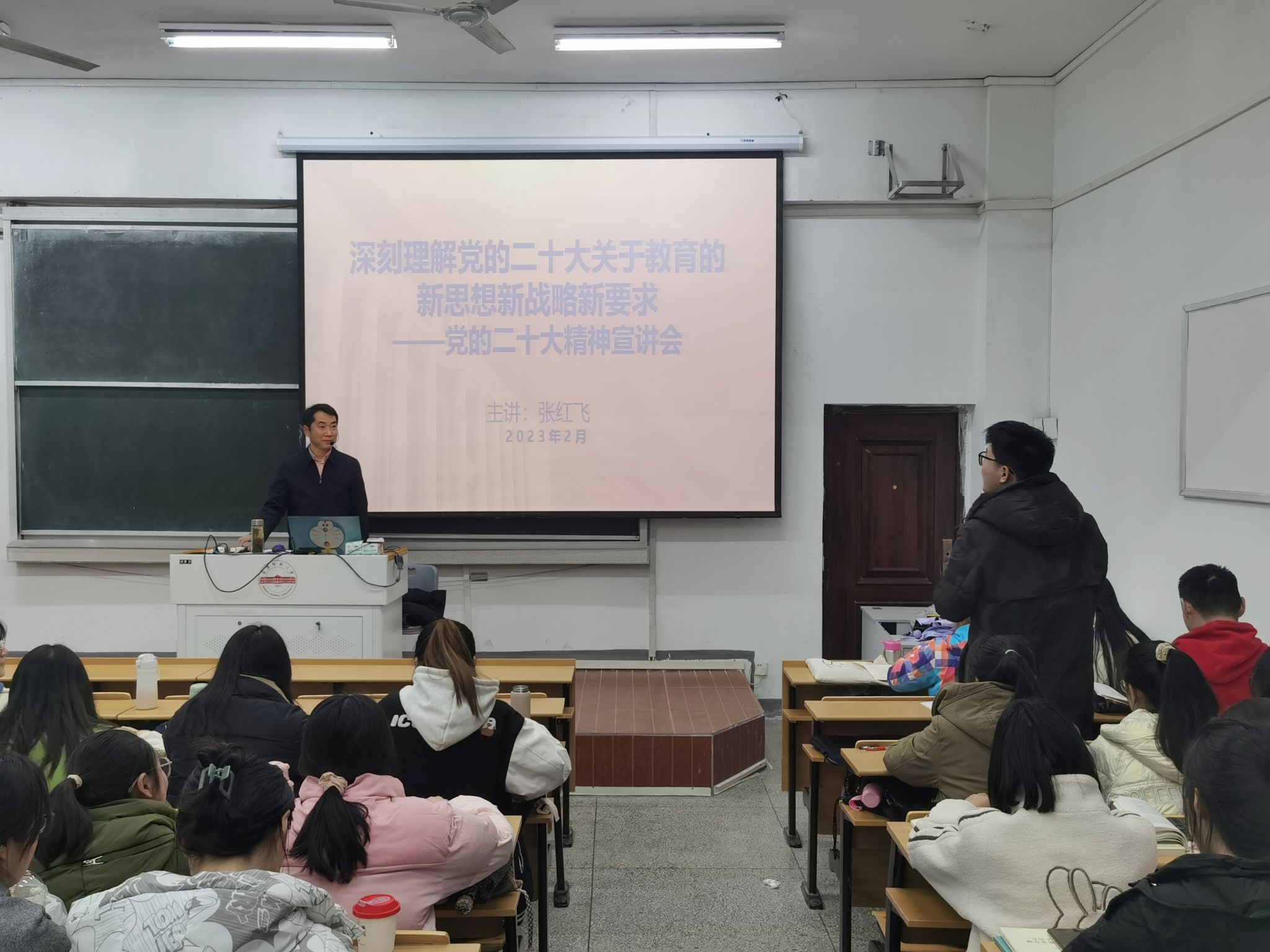 2月23日,太阳成集团tyc9728举办学习贯彻党的二十大精神宣讲会。太阳成集团tyc9728党委书记张红飞做了题为《深刻理解党的二十大关于教育的新思想新战略新要求》的报告。2020级汉语言文学5班、6班100余名同学聆听了报告。