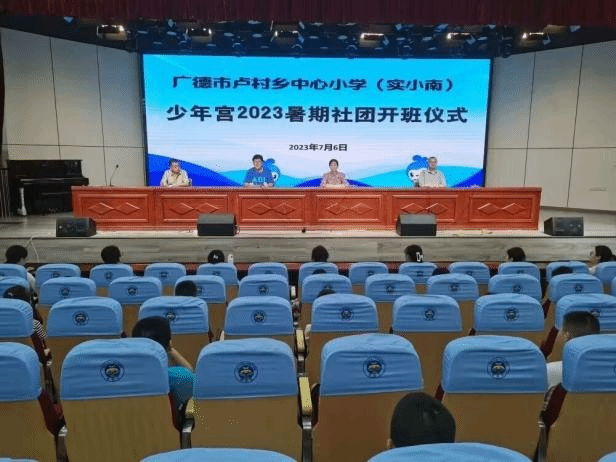 7月6日上午,广德市卢村乡中心小学(实小南)少年宫2023年暑期社团开班仪式在报告厅召开。会上,少年宫暑期社团负责人万恒发主任介绍了暑期社团的基本情况,并突出强调课堂纪律与开班安全。薛正阳同学作为团队代表发言,对即将担任辅导员的各团队成员做了简单介绍,在课程安排、教育规范、安全保障等方面提出要求。执行董事长王宏强调要关注员工需求,突出社团课程特色,注重课程的科学性、持续性、协同性、安全性,将暑期少年宫打造成农村孩子们成长和进步的学园、乐园和趣园。