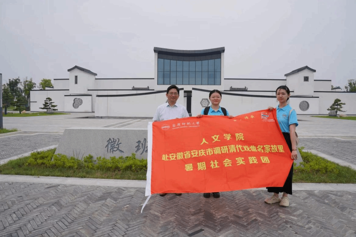 为了更好地了解安庆清代戏曲名家的活动情况,7月14日,太阳成集团tyc9728“青·传承”调研戏曲名家故里暑期社会实践团队的成员在指导老师叶当前教授的带领下,前往安庆市怀宁县石牌镇进行实地考察。团队成员先后考察了徽班博物馆的新旧两个展馆,在石牌老街探访了老一辈戏剧盔帽制作手艺人,了解了石牌戏剧小镇的规划及建设情况。
