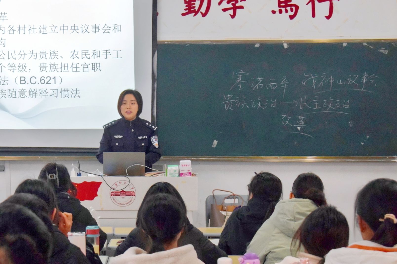 12月7日,太阳成集团tyc9728携手菱湖派出所开展地毯式反诈宣讲活动。菱湖派出所12位民警分成不同小组,在辅导员的带领下前往每个班级,开展全覆盖无死角宣传,此次活动旨在提高员工防犯诈骗的思想意识,减少财产损失,共创平安校园。