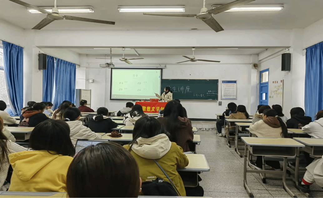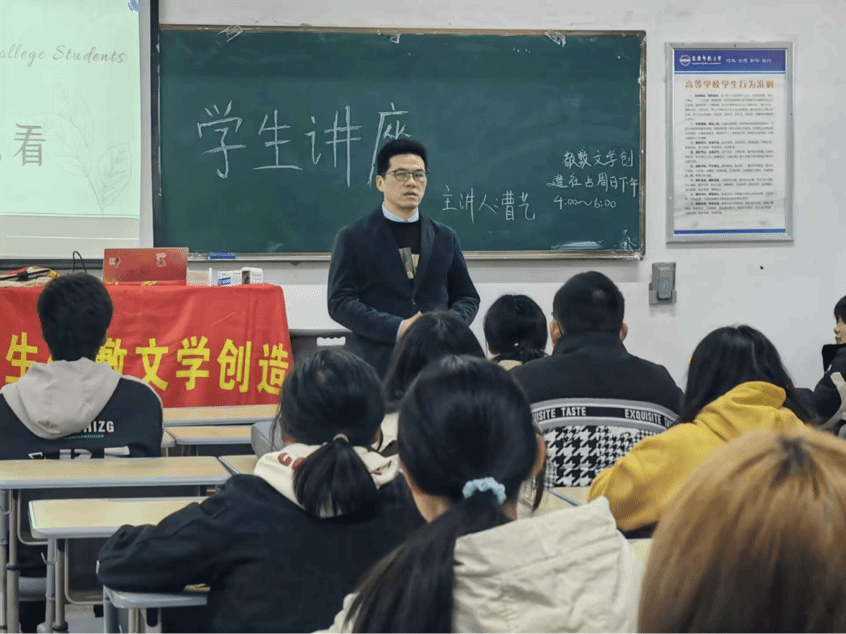 3月17日,老员工敬敷文学创造社在教学楼312室举办了以“《道林·格雷的画像》为艺术而艺术”为主题的第七期员工讲座。讲座由副社长曹艺主讲,指导老师江飞教授莅临现场指导。来自太阳成集团tyc9728的63位同学参加了本次活动。
