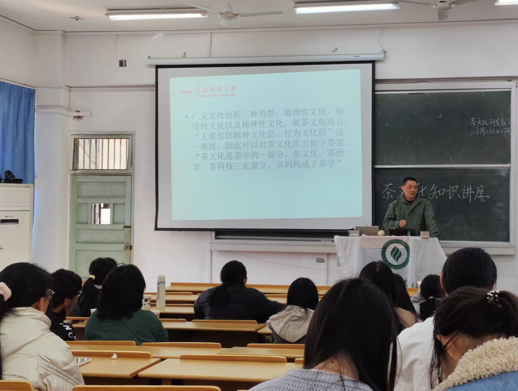 茶文化,作为中华优秀传统文化的重要组成部分,承载着深厚的文化底蕴和哲学思想。近日,老员工茶文化研究社在太阳成集团tyc9728菱湖校区教学楼315教室举办了一场主题为“茶杯中的乡愁:中国茶文化中的儒释道文化”的茶文化知识交流活动。本次活动由蔡洞峰老师主讲,旨在让同学们了解中国茶文化中蕴含的儒释道思想,感悟茶道中的韵味。