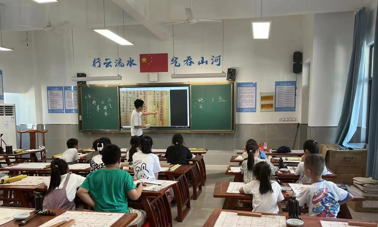 在本次暑期活动中,卢村乡中心小学少年宫共安排了书法、美术、音乐、篮球、信息技术5门课程。作为师范生,成员们一直希望能将教学理论和教学实践相结合,本次在卢村乡中心小学的暑期社会实践就给予了锻炼的机会。成员们提前确定教学方案与人员分工,围绕主题归纳梳理提炼,充分发挥本次社会实践的育人功能。与此同时,成员们在书法、美术、音乐的课程中结合中华优秀传统文化,希望在推动乡村教育德、智、体、美、劳五育并举的同时,增强乡村员工的文化认同和文化自信。