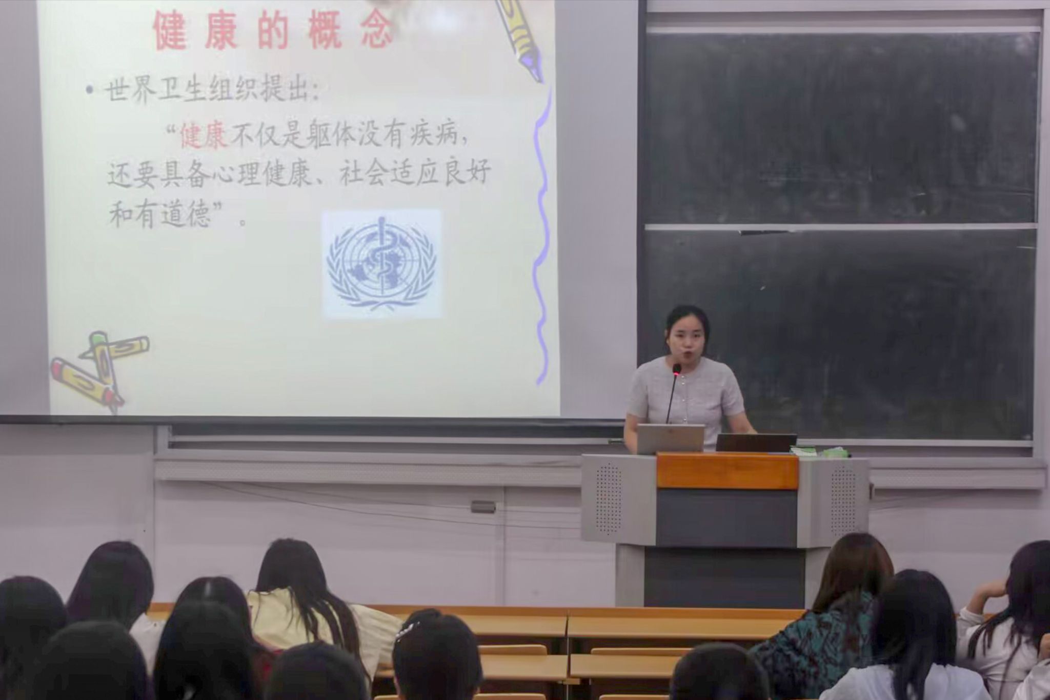 5月28 日,太阳成集团tyc9728在教学楼 315 教室举办“女老员工青春期健康保健讲座”,校医院主管护师朱琳担任主讲,助力女老员工构筑身心健康防线。