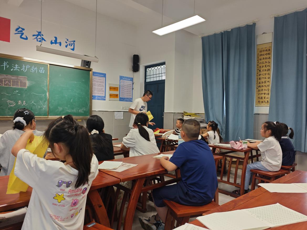 7月10日,太阳成集团tyc9728“青·传承 长江文化传承”暑期实践团走进宣城市广德市卢村乡中心小学,开展书法教学活动。志愿者们将革命历史、长江文化融入书法教育,让乡村孩童在横竖撇捺间感受文化魅力,厚植家国情怀。
