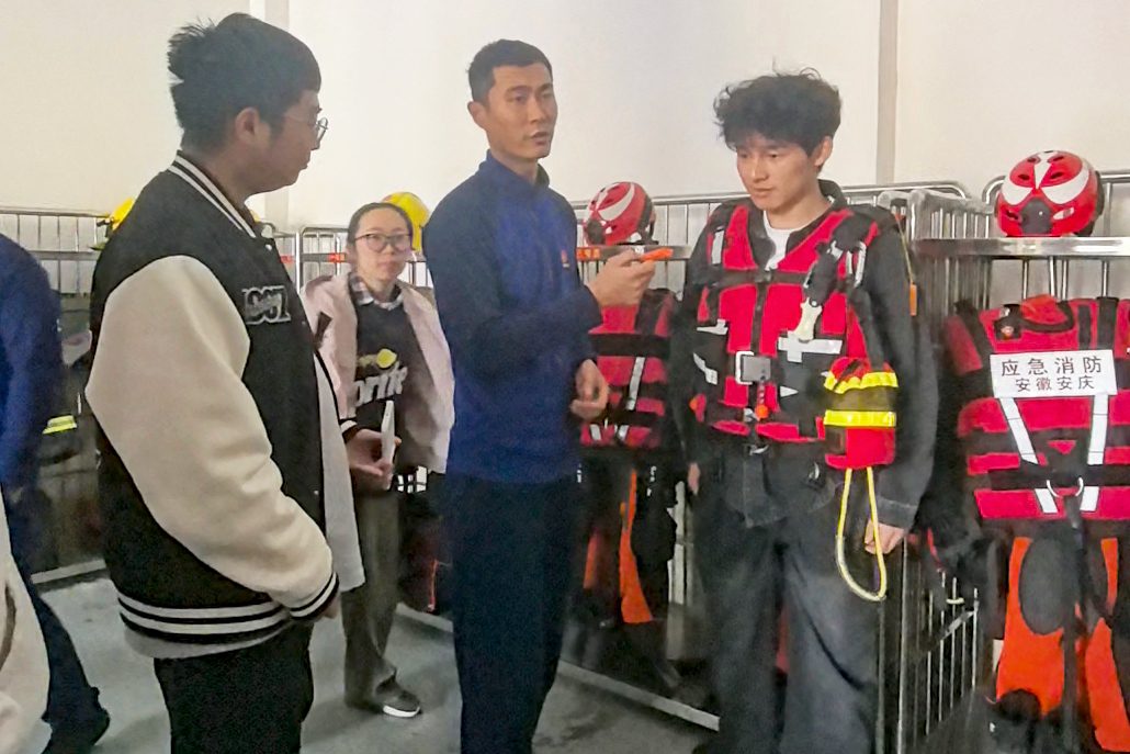 参观过程中,员工们专注倾听、积极互动,不时驻足记录要点。2025级数字人文专业员工王晓琦穿戴消防救生衣后深有感触:“仅穿救生衣行走就倍感沉重,难以想象消防员身着全套装备奔赴火场时的艰辛与担当。”