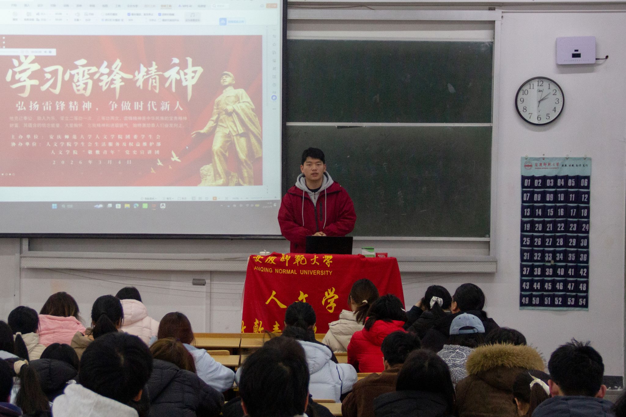 3月5日,“传承雷锋精神”主题交流分享会正在教学楼313教室举行。2025级中国语言文学类专业(1)班的胡文琦担任主讲人。她以“精神解码、当代镜像、行动指南、时代回响”四个维度为脉络,层层递进,生动勾勒出雷锋同志无私奉献的光辉一生。在研讨交流环节,大家结合实际围绕雷锋精神的实践路径开展交流。2025级中国语言文学类专业(1)班的杨佩琪分享道:“这次分享会启发我自我价值也可以在平凡小事中实现。作为青年员工,我们要从身边做起,爱护集体、文明有礼,做一个有温度、有担当的人。”