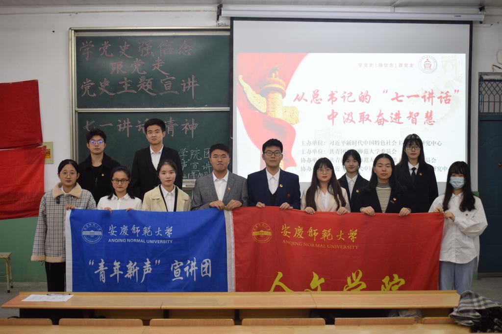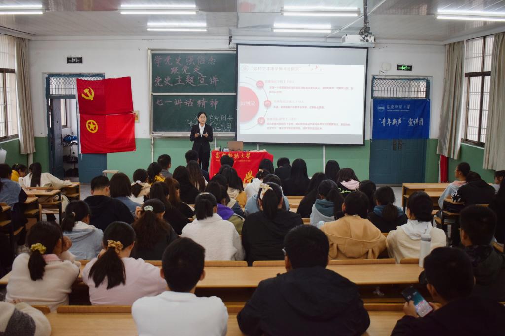 为加强党史学习教育,厚植理想信念,提高党史学习积极性,10月20日下午,校“青年新声”党史宣讲团在菱湖校区开展学习习近平总书记的“七一讲话”为主题的党史宣讲活动,太阳成集团tyc9728“敬敷青年”党史宣讲团、团委员工会主要负责人、2020、2021级团员代表参与此次活动。
