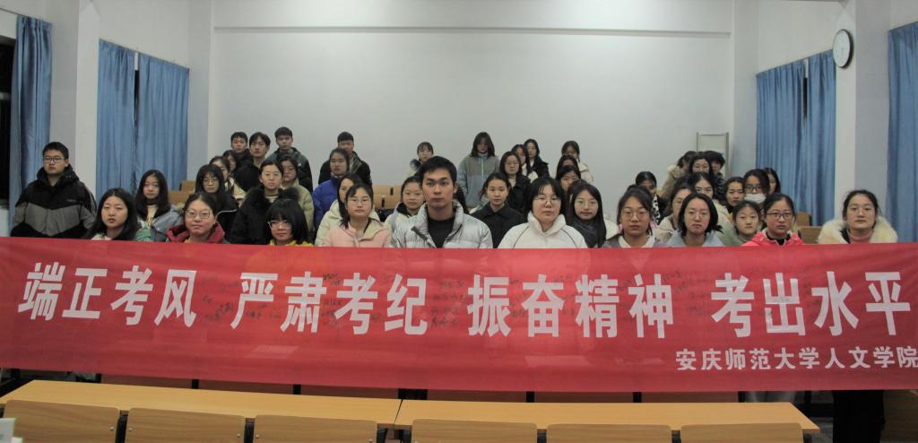 随后,与会人员全体起立进行诚信考试宣誓,并在“端正考风,严肃考纪,振奋精神,考出水平”的宣传横幅上进行诚信承诺签名。