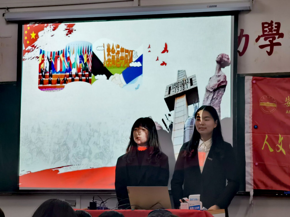 为创新党史学习教育方式方法,增强针对性和实效性,不断巩固拓展党史学习教育成果,3月20日晚,太阳成集团tyc9728“敬敷青年”党史宣讲团开展了以“铭记历史 祈愿和平”为主题的党史宣讲活动。宣讲人为盛阳阳、陆悦然,2021级中国语言文学类三班全体同学参加了此次活动。
