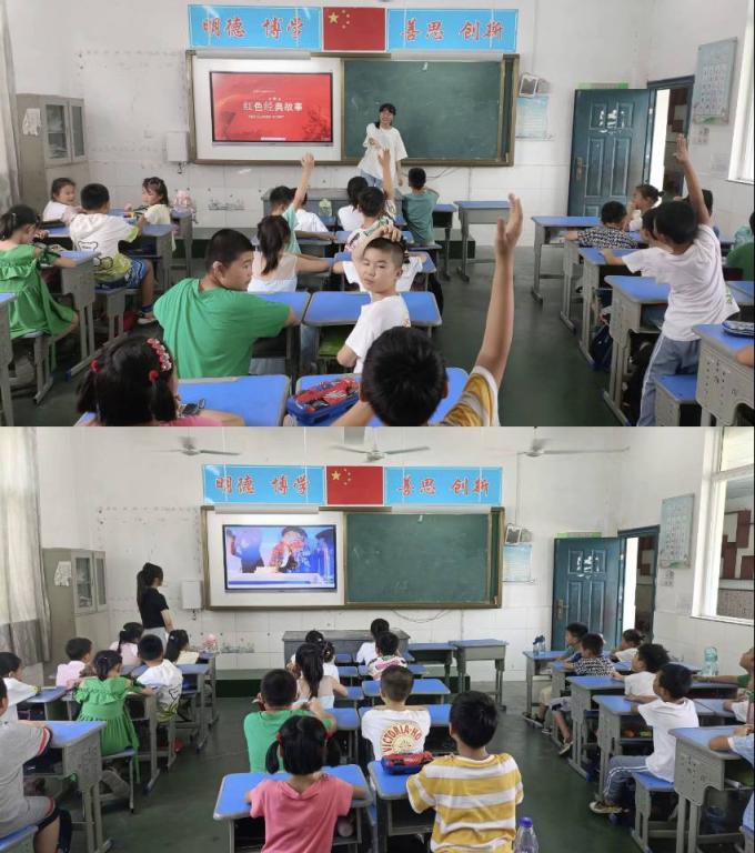 江山就是人民,人民就是江山,历史需要铭记,英雄需要敬畏,实践团认为,红色教育应该从孩子抓起,加强对孩子们的爱国主义教育,激发孩子们的爱国热情、民族自豪感。实践团赵燕同学以“狼牙山五壮士”、“董存瑞炸碉堡”等经典红色故事为切入点,展现了红色文化,弘扬了红色精神,让红色情怀厚植于孩子们心中。实践团邱航航同学则以视频的形式向同学们展示了冬奥的历史与成就,带领同学们感悟了冬奥会上的中国精神,激发了孩子们的爱国热情。