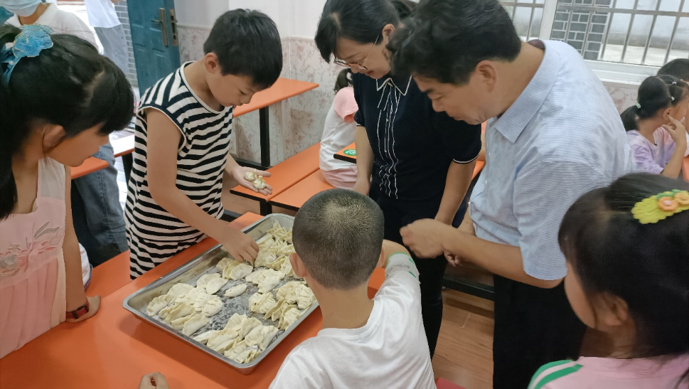 劳动教育是小员工德智体美劳全面发展的主要内容之一,是中国特色社会主义教育制度的重要内容。实践团欧慧琴同学向孩子们介绍了劳动的意义与重要性,帮助同学们树立了正确的劳动观。在校食堂的协作下,欧慧琴同学带领孩子们亲自动手包饺子。在劳动结束后,孩子们获得了巨大的成就感,劳动的价值已然明晰在每个人心中。