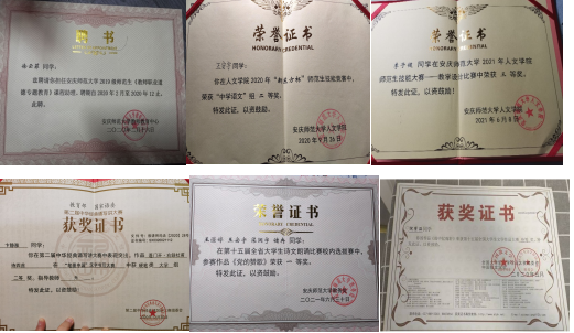 我支部同学在努力夯实专业知识的基础上,还不断尝试,积极参与,在一次一次磨练之中促进专业技能的提升,无论是国家级考试的达标率,还是作为师范类员工的重要技能检验—师范生技能大赛以及由此衍生的普通话粉笔字教案等多个方面的比拼,我班同学都以扎实的功底展示出了无限可能,夺得了众多资格证书和多个突出奖项。全班同学积极参加国家级考试,英语四级通过率高达97%,普通话二甲通过率高达90%,英语六级的通过率也达到了21%。此外班级同学还积极参加大广赛、挑战杯红色专项、老员工双创大赛、老员工艺术展演等AB类赛事中均有获奖,更有同学在挑战杯中挺入国家终审决赛。