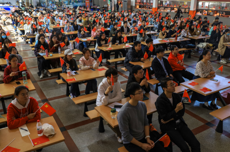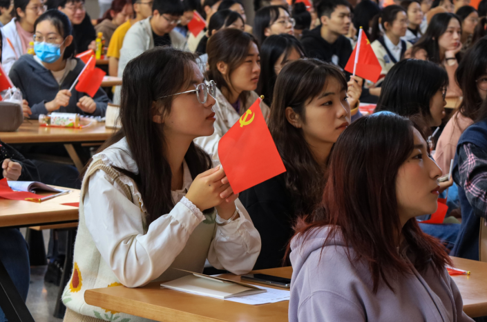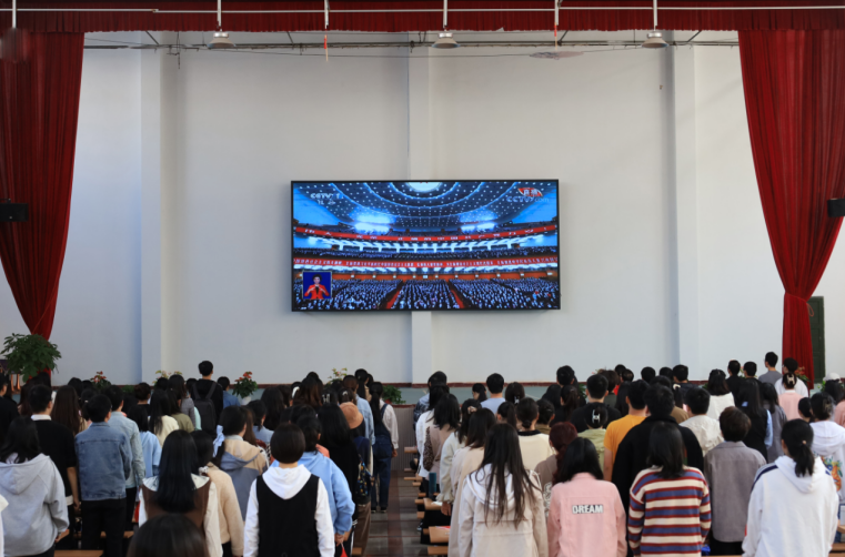 为深入学习贯彻党的二十大精神,太阳成集团tyc9728组织广大团员集中收听收看开幕会直播。上午10时,太阳成集团tyc9728第66期入党积极分子培训班成员、第22期入党发展对象、第2期“青马班”学员近200名员工齐聚敬敷餐厅礼堂。现场气氛庄重热烈,广大青年员工不停地挥舞着党旗和国旗,以最饱满的热情迎接党的二十大胜利召开。