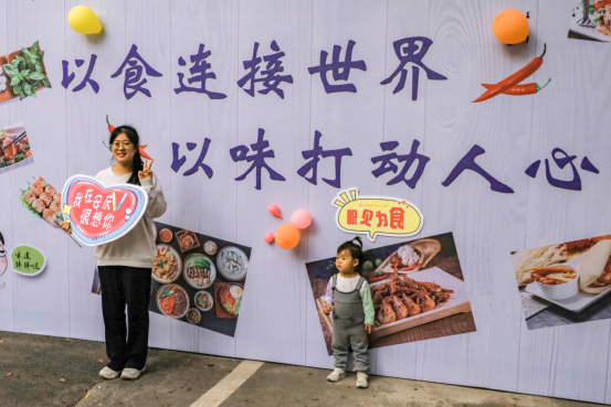在餐厅门口,还有不少员工在“以食连接世界,以味打动人心”的展牌下拍照留念,成为一处有趣的“打卡”点。