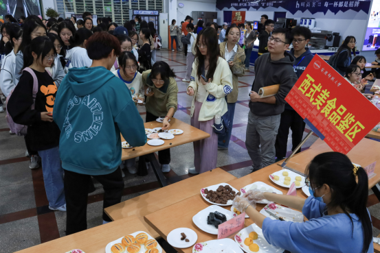 “心情真的非常的愉悦。”在排队品鉴食物的队伍中,历史学专业2021级(3)班的黄菲一边品尝着手中的烧烤,一边又加入进品尝各类中式菜肴的队伍中。