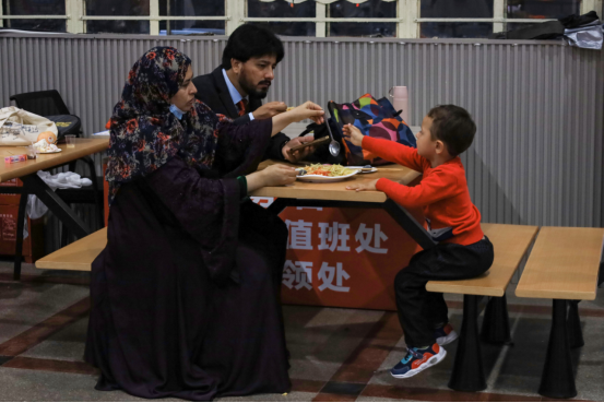 来自巴基斯坦的外籍教师穆拉德·阿里沙与自己的妻子孩子坐在餐厅一角,品尝着中式美食。他表示,活动现场热闹活跃的气氛深深感染了他。他在中国已经授课近三年,这样的一次中外文化交流活动带给了他很新奇的体验。“我品尝了一些中国食物,还在员工的帮助下学习了一些书法,这种感觉真的很棒。”