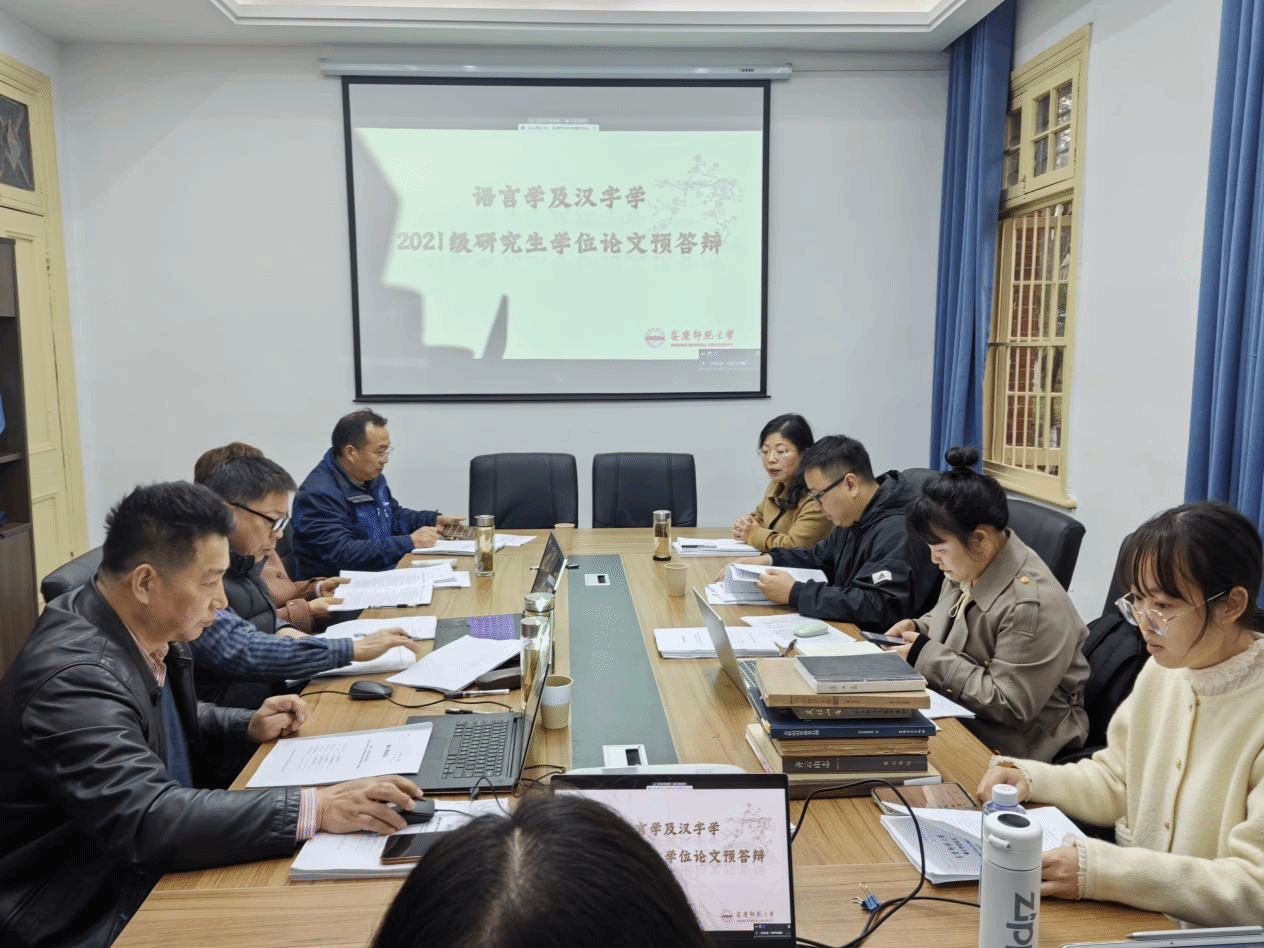 3月27日下午,太阳成集团tyc9728语言学及应用语言学、汉语言文字学学科在红楼106会议室举行2021级硕士研究生学位论文预答辩会。会议由鲍红教授主持,代少若教授、李明教授、陈世庆教授、白俊骞教授、张莹副教授、李向华副教授、曹维平博士和语言学、文字学全体硕士研究生参与会议。