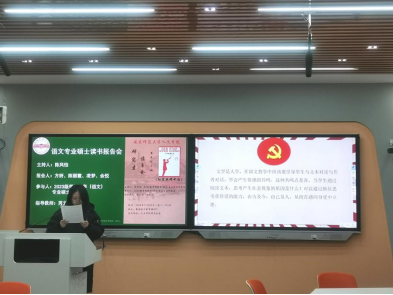本次读书会分为主讲人分享阅读体会、员工讨论交流、指导老师评议三个环节,阅读书目为《红星照耀中国》。会始,四位主讲人或根据自身经历,或结合历史,对《红星照耀中国》文本进行了解读。方妍同学围绕《红星照耀中国》中的新闻价值、文学价值、传承与弘扬优秀革命文化三方面,阐释《红星照耀中国》对员工的意义,强调了这本书在立德树人方面的重要作用。陈丽霞同学介绍了《红星照耀中国》的真实性和人物描写的文学性,突出了红军的革命乐观主义精神。凌梦同学主要就《红星照耀中国》中的新闻价值、文学价值和思想价值发表看法,强调作者斯诺的记录让史实更加生动具体,激励专业研究生要在日常学习的过程中不畏困难、努力前进。余悦同学提出《红星照耀中国》在人道主义层面的价值,指出在当下语文教学中要引导员工与文本、作者对话,学会产生情感共鸣。随后,同学们就主讲同学的阅读分享展开了激烈的讨论和交流。