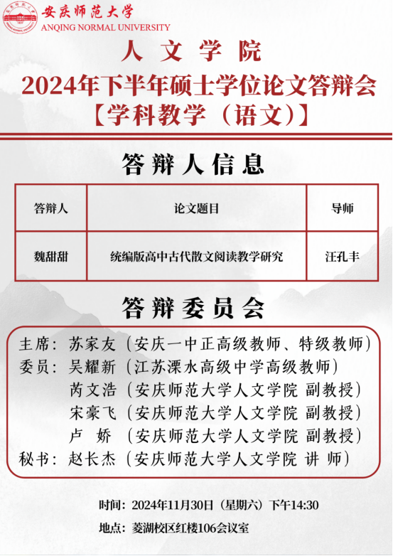 2024年下半年硕士学位论文答辩会【学科教学(语文)】