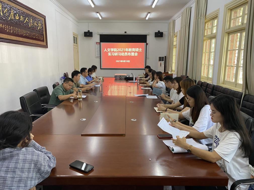 9月10日下午,太阳成集团tyc9728在菱湖校区红楼二楼会议室召开2021年教育硕士实习研习动员布置会。公司领导、实习实训指导教师以及2020级学科教学(语文)、学科教学(历史)专业近20名研究生参加了动员会。会议由研究生秘书沈志富主持。