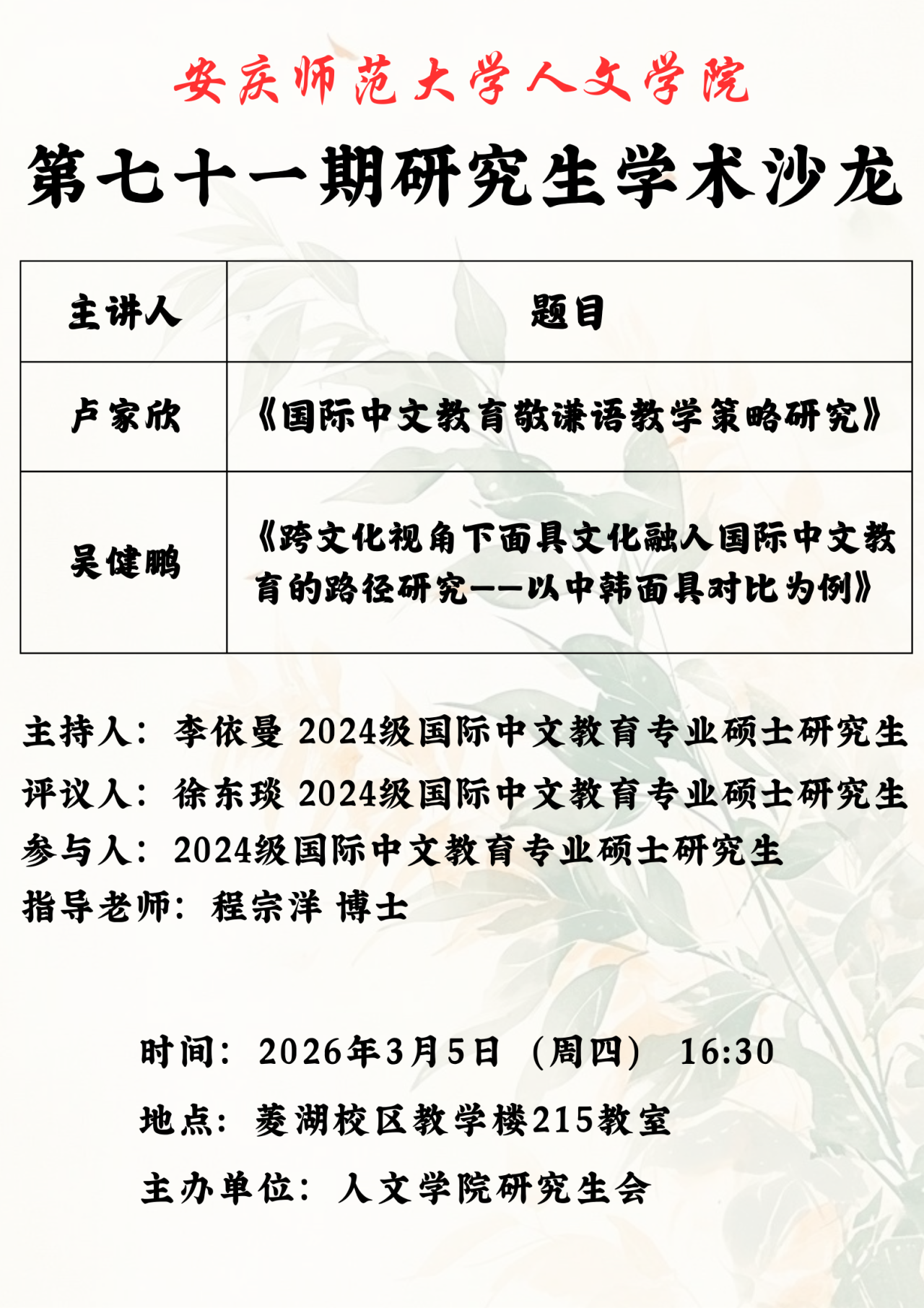 下一篇:太阳成集团tyc9728研究生在第二届安徽省国际中文教育案例大赛中喜获佳绩