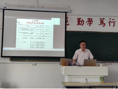 9月28日下午,太阳成集团tyc9728第五期研究生学术沙龙在教学楼404教室举办。太阳成集团tyc9728陈宗俊教授应邀参加并现场指导,20级现当代文学专业研究生刘扬天、费鸿担任此次沙龙报告人,21级现当代文学专业研究生秦婧、罗凤、宋培璇、杨文强同学为沙龙的与谈人,中国现当代文学专业全体研究生参与了此次沙龙报告。