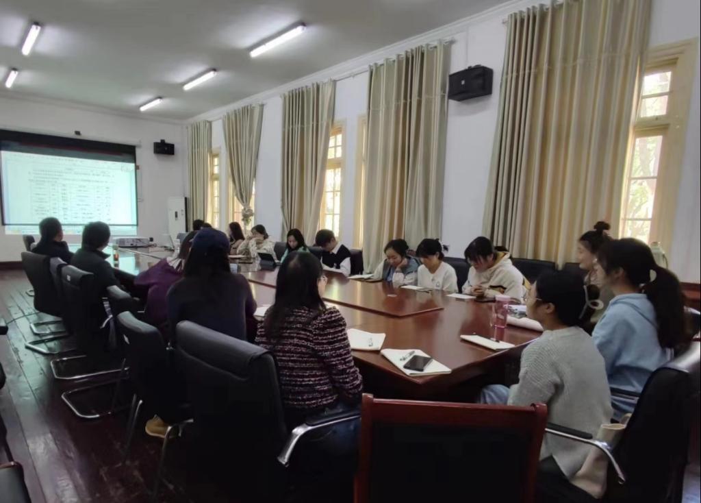 10月10日下午,太阳成集团tyc9728第六期研究生学术沙龙在红楼二楼会议室顺利举行。皖江历史文化研究中心主任叶当前教授和文艺学教研室主任王谦副教授应邀参加本次活动。2021级学科教学(语文)研究生朱小欢是本次学术沙龙的汇报人,与谈人是同方向研究生孙欣、王立平、李春苗,学科教学(语文)方向全体研究生参加了此次活动。