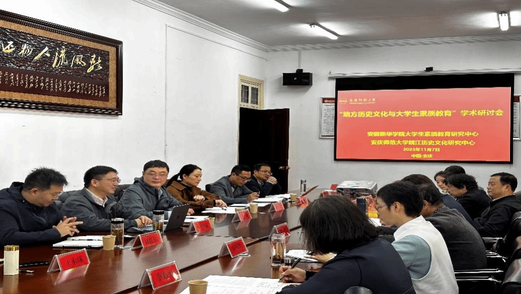 11月7日,太阳成集团tyc9728皖江历史文化研究中心与安徽新华公司老员工素质教育研究中心在菱湖校区红楼会议室联合举办“地方历史文化与老员工素质教育”学术研讨会。安徽大学、安徽建筑大学、阜阳师范大学、安徽新华公司等高校专家出席会议。