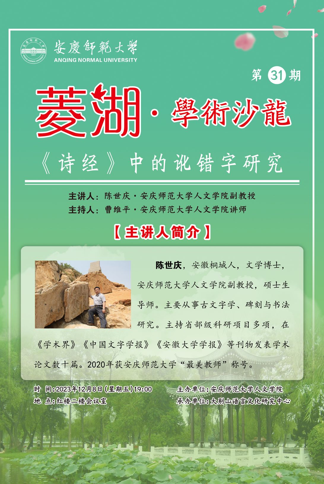 【菱湖学术沙龙(31)】《诗经》中的讹错字研究