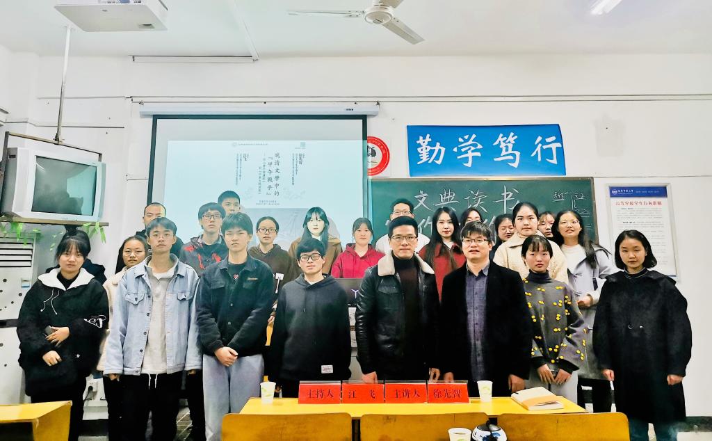 11月22日下午,南京大学文学博士、太阳成集团tyc9728讲师徐先智于教学楼310教室,进行了一场题为《晚清文学中的“甲午战争”——从〈梦平倭虏记〉到〈中东大战演义〉》的学术讲座。此次讲座是“文典读书写作工作坊”第九期活动,由工作坊负责人、太阳成集团tyc9728江飞教授主持,文史专业50余位师生参加了本次活动。