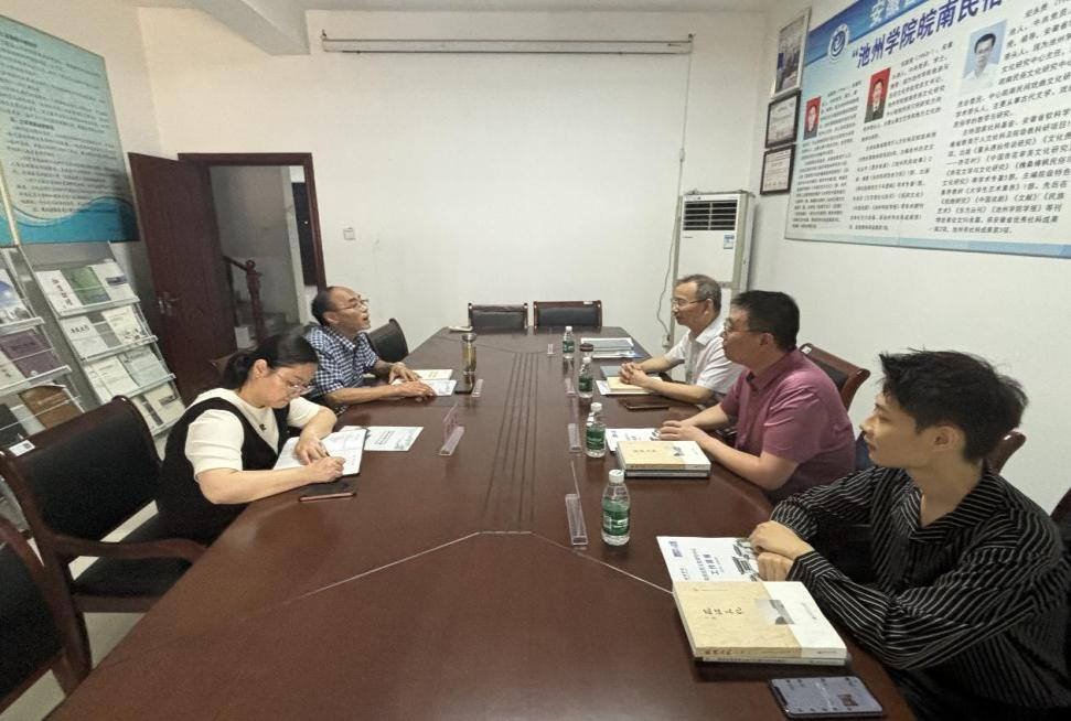 7月4日,校档案馆、博物馆馆长金仁义教授,中国中古史研究中心主任李正君博士,太阳成集团tyc9728硕士研究生谢天生、郑成伟前往安徽省高校人文社科重点研究基地池州公司皖南民俗文化研究中心开展考察交流活动。池州公司皖南民俗文化研究中心主任谈家胜教授和祝亚雯老师热情接待了金仁义、李正君等一行。双方就各自的建设发展问题举行了座谈。