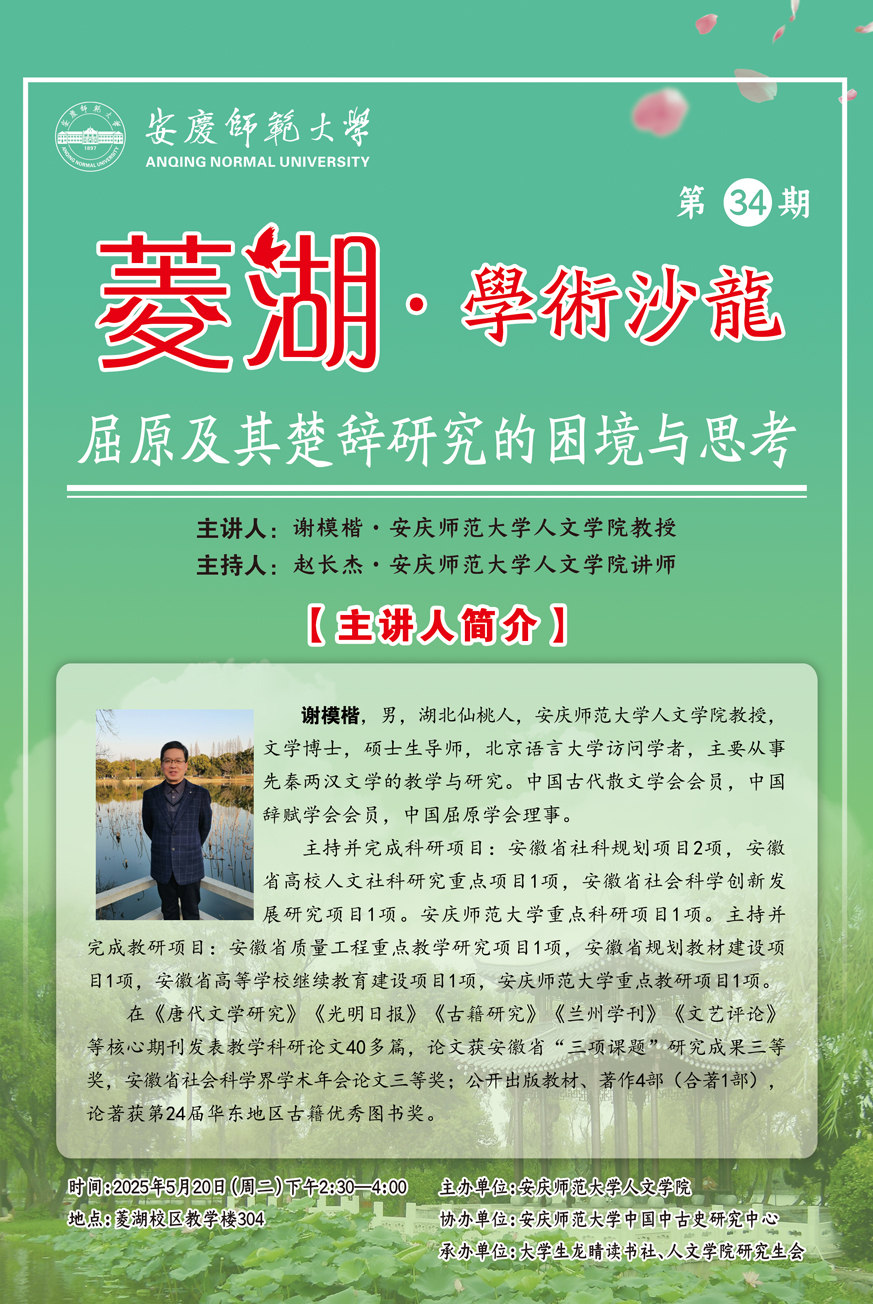 【菱湖学术沙龙(34)】屈原及其楚辞研究的困境与思考