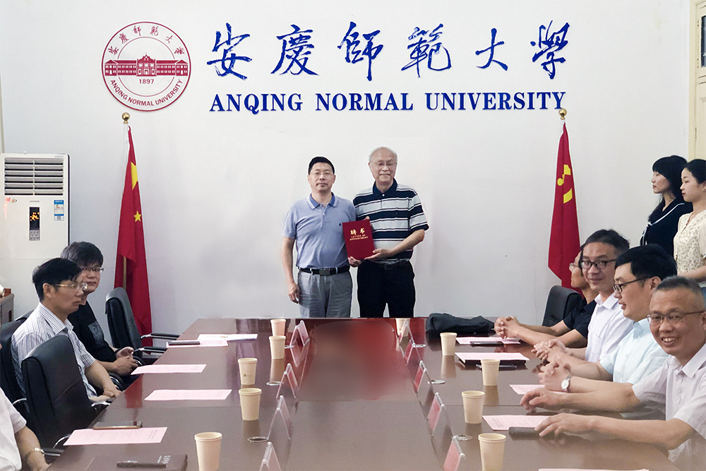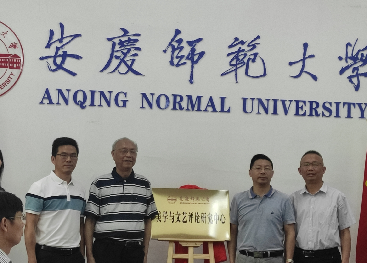 陈二祥教授随后宣读了《关于同意设立“美学与文艺评论研究中心”的通知》,汪时珍副董事长分别为美学与文艺评论研究中心学术委员会顾问朱立元教授、中心主任江飞教授颁发了聘书,并一同揭牌。