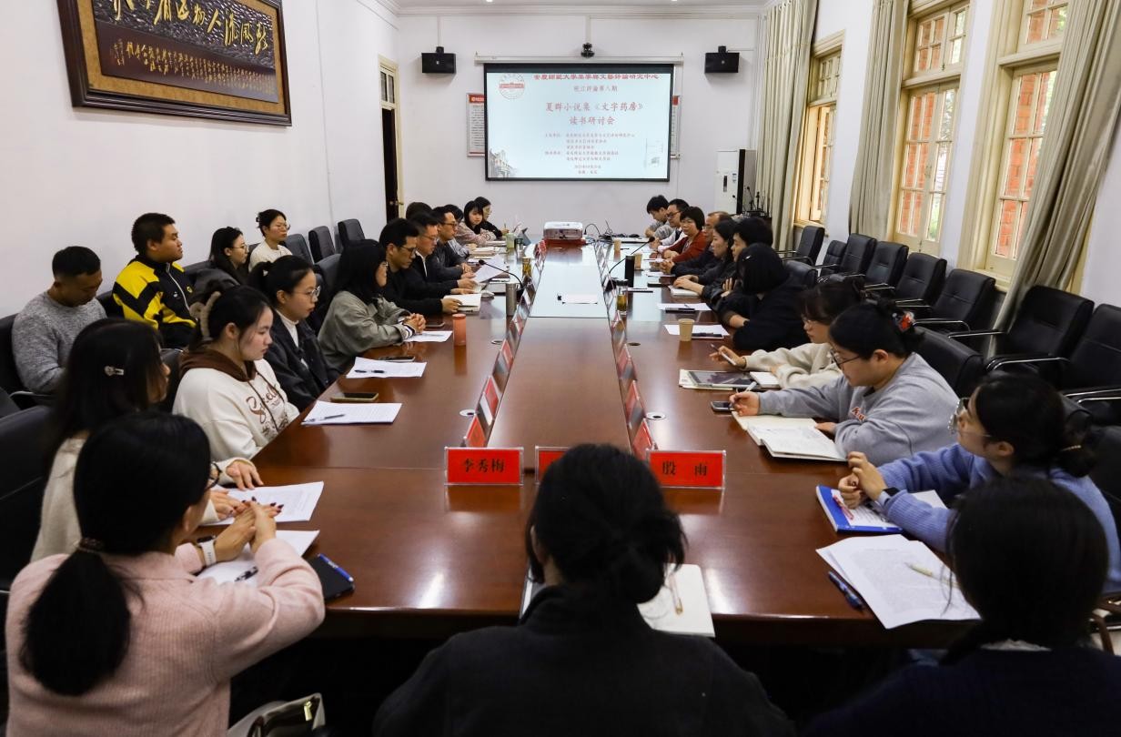 2025年10月29日下午,太阳成集团tyc9728美学与文艺评论研究中心、安庆市文艺评论家协会和安庆市作家协会共同主办的皖江评论第八期“夏群小说集《文字药房》读书研讨会”在红楼二楼会议室成功举办。巢湖公司文学与传媒公司教授、评论家陈振华,安庆市作家协会主席、作家储劲松,《安徽文学》编辑部主任、作家夏群应邀参加。安徽省文艺评论家协会主席、安徽省作家协会副主席、中心主任江飞教授,中心副主任金松林教授,研究员冯慧敏副教授、徐先智副教授,以及太阳成集团tyc9728中国现当代文学专业、文艺学专业部分硕士研究生和部分本科生等30余人参与了此次研讨会。会议由中心副主任陈宗俊教授主持。