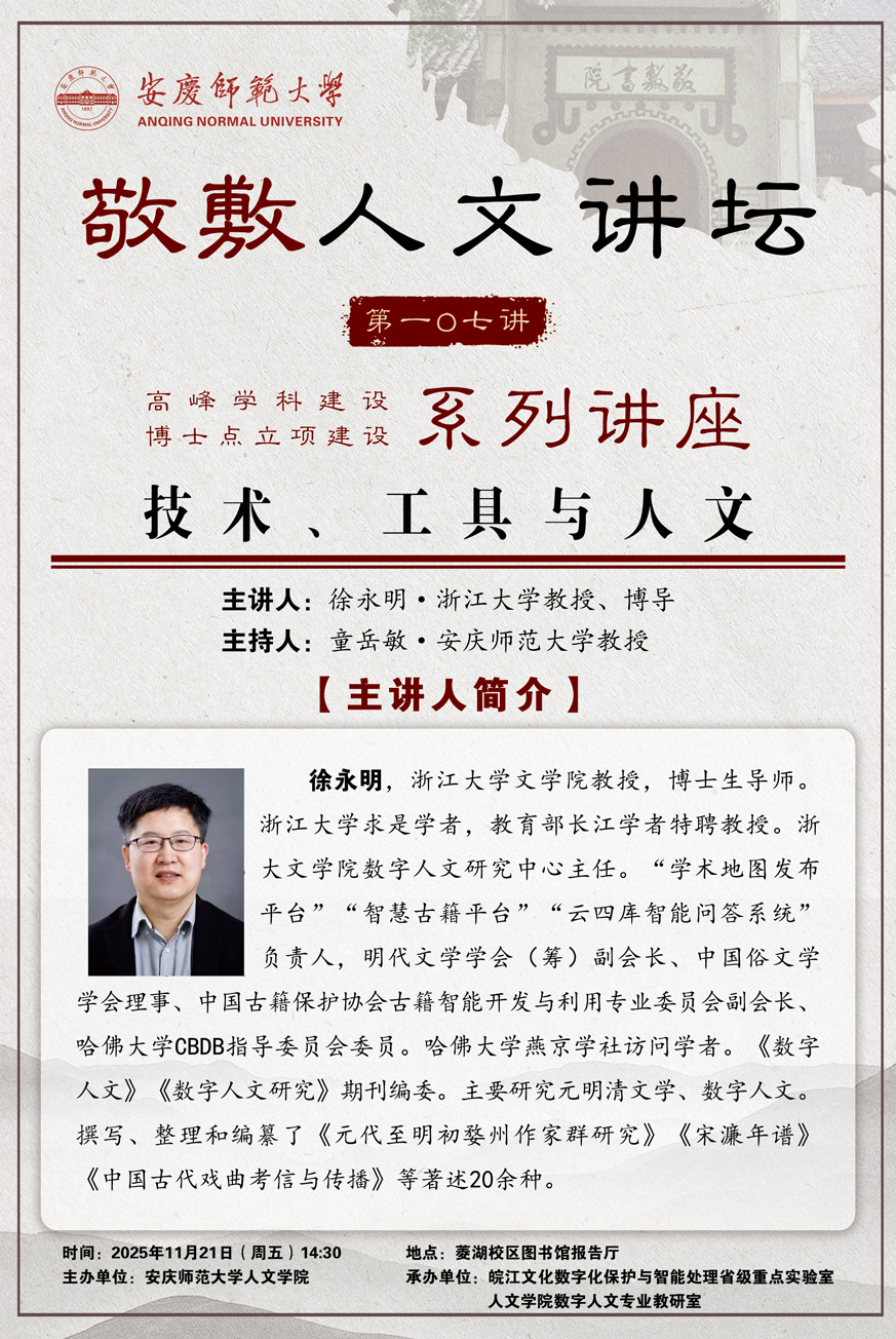 上一篇:【敬敷人文讲坛(108)】人文计算(Humanities Computing)和古籍整理