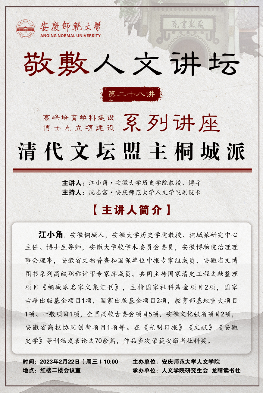 上一篇:【敬敷人文讲坛(29)】灾难面前 诗人有为——以近代自然灾难诗歌书写为例