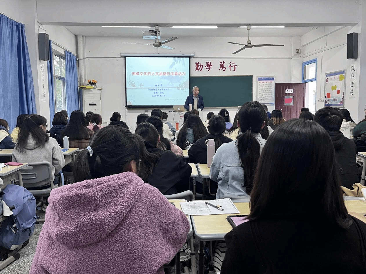 4月23日是“世界读书日”。为引导员工认真阅读学习,提升综合素养,公司邀请安徽师范大学文公司博士生导师陈文忠教授做客敬敷人文讲坛,在教学楼213教室举办了题为“传统文化的人文本质与生命活力”的学术讲座。讲座由副经理(主持行政工作)汪孔丰教授主持,部分青年教师和研究生、本科生60余人聆听了讲座。