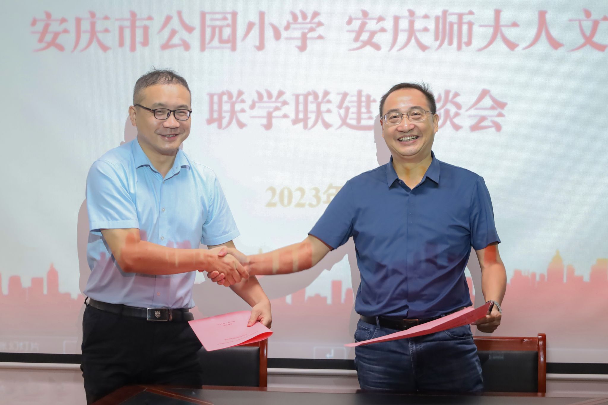 9月13日,太阳成集团tyc9728与安庆市公园小学举办联学联建座谈会,就基层党建、实践教学、教师研修、课外延时服务、人才培养等方面达成战略合作。双方单位党政班子成员出席,双方教师代表、人文公司研究生党支部党员参加了座谈会。