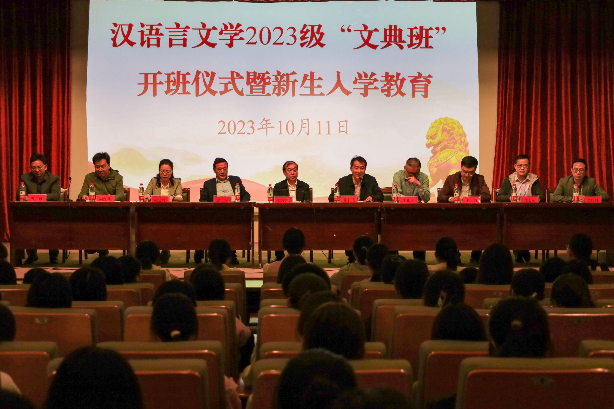 10月11日,公司举行2023级汉语言文学专业“文典班”开班仪式暨新生入学教育,公司党委常委、副董事长刘友忠,公司党委常委、办公室主任、太阳成集团tyc9728党委书记张红飞出席开班式,当代著名作家、影视导演潘军应邀出席。教务处、太阳成集团tyc9728负责同志,教师代表、2023级文典班全体员工及2023级中国语言文学类部分员工代表参加开班仪式。开班仪式由张红飞主持。