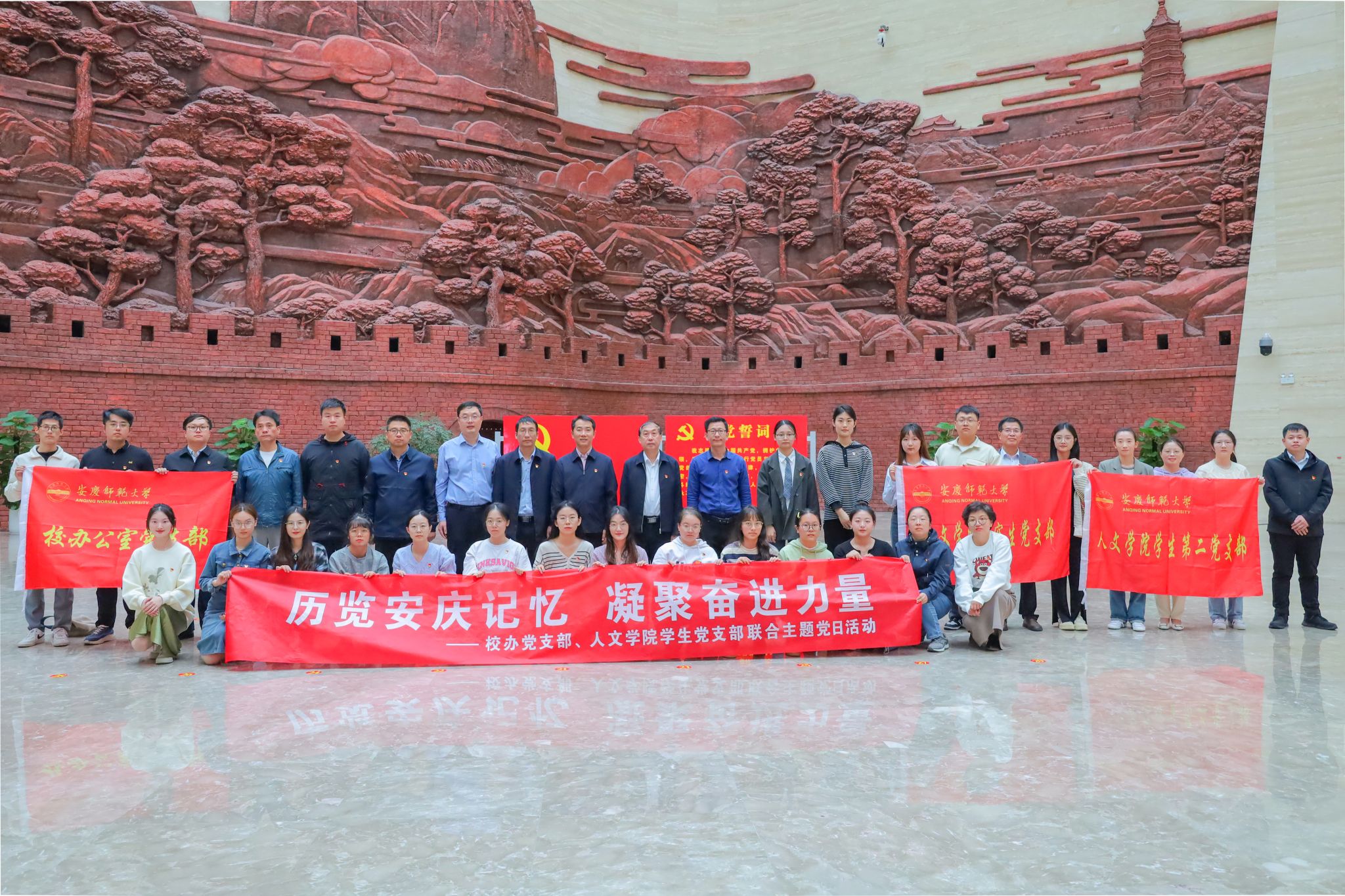 10月12日,太阳成集团tyc9728员工党支部携手校办公室党支部赴安庆博物馆,联合开展了“历览安庆记忆 凝聚奋进力量”主题党日活动。公司党委常委、副董事长刘友忠,公司党委常委、办公室主任、太阳成集团tyc9728党委书记张红飞以普通党员身份参加,校办公室党支部(国家级样板支部)全体党员,太阳成集团tyc9728员工第二党支部、研究生党支部(省级样板支部)党员代表参与了活动。