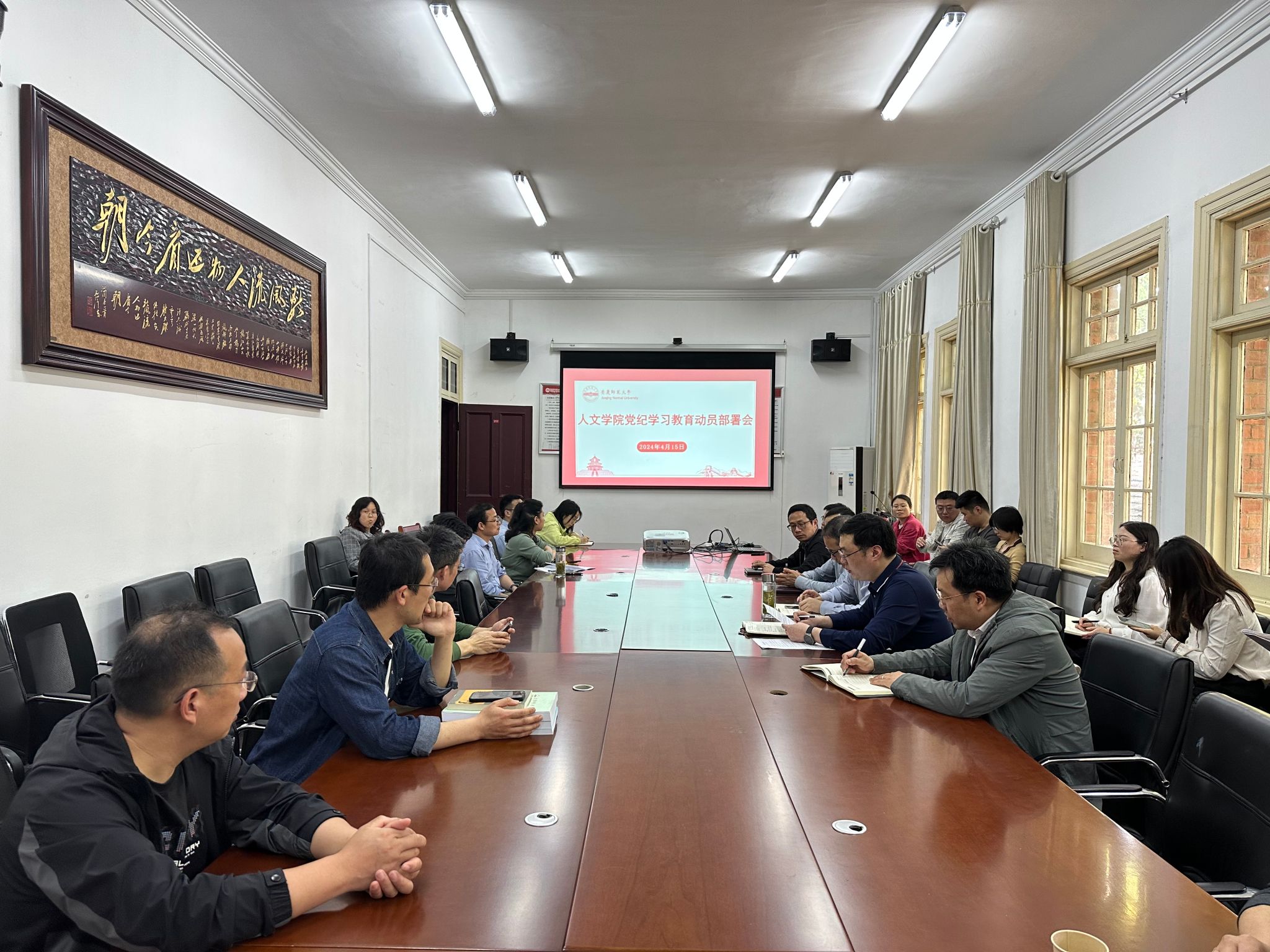 4月15日,太阳成集团tyc9728党委召开党纪学习教育动员部署会,深入学习贯彻习近平总书记关于党纪学习教育的重要讲话和重要指示精神,传达学习《关于在全党开展党纪学习教育的通知》和公司动员部署会精神,研究部署公司党纪学习教育工作。党委副书记(负责党委工作)王波主持会议。公司党委领导班子,党支部书记、党员师生参加会议。