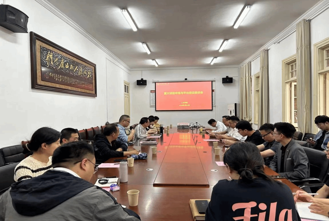 5月31日,公司召开了重大项目申报与平台建设座谈会。江苏师范大学文公司沙先一教授、安徽师范大学文公司潘务正教授应邀参会。会议由副经理金松林教授主持,经理汪孔丰教授、科研平台负责人及部分青年骨干教师参与座谈。